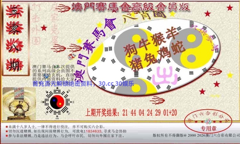 | 第303期⑥肖:鸡猴马狗虎兔 |